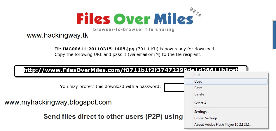 Step 1; Go here http://www.filesovermiles.com/ and select files which you wanna share with your friends..